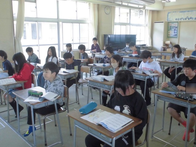 誰もが耳にしたことのある馴染み深い曲ですが、今日は5年生らしい視点で、旋律の重なりや曲の構成、そして歌詞に込められた意味をじっくりと味わいました。曲を聴きながら、空を泳ぐこいのぼりの悠々とした姿を想像し、その情景を音から感じ取ろうとする真剣な姿が見られました。