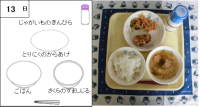 今日の献立は、小型ロールパン・牛乳・焼きそば・バンバンジーサラダ・ヨーグルトです。