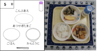 今日の献立は、ごはん・牛乳・天の川汁・星のハンバーグ・鉄骨和え・セレクトフルーツです。