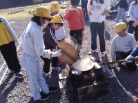 運動会が終わってからの体育では、ソフトバレーボールに取り組んでいます。チームごとに分かれて、パス練習に励んでいます。高さに合わせて、アンダーハンドパスとオーバーハンドパスを使い分けることができるように頑張っています。