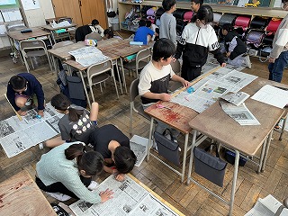 算数の授業で1平方メートルの大きさを考えました。実際に新聞紙でつくると「大きい」「むずかしい」「意外と広い」という声が聞こえました。大きさを体感しながら学ぶことができました。