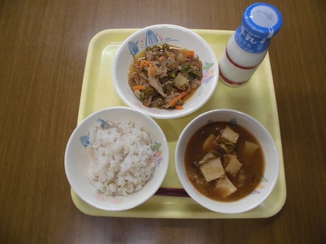今日の献立は、「豚丼、牛乳、いしかり汁」でした。