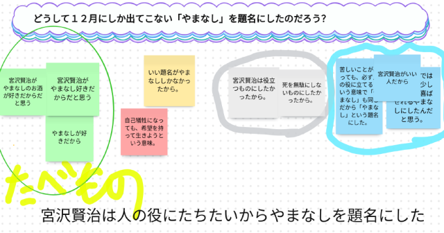 国語の「やまなし」では、どうして「やまなし」という題名にしたのか、作者の意図を考え、話し合いました。