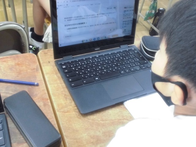 4年生は、社会の時間に、「昔を伝えるものを知ろう」というめあてで、調べ学習を行っています。