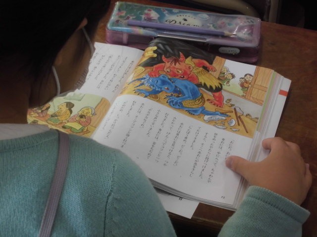 授業では、人間と友達になりたい赤おにと、それをかなえるために行動した青おにのやりとりを通して、友達と互いに理解し、信頼し、助け合うことの大切さを学びました。