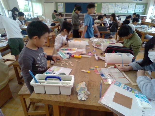 10月24日 5年 図工 切り分けた形からなに作る?