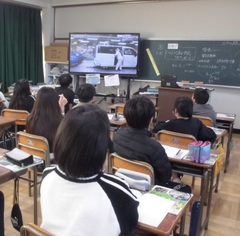 授業では、どのような車が開発されているのか予想し、教科書や動画を見てみんなで考えました。