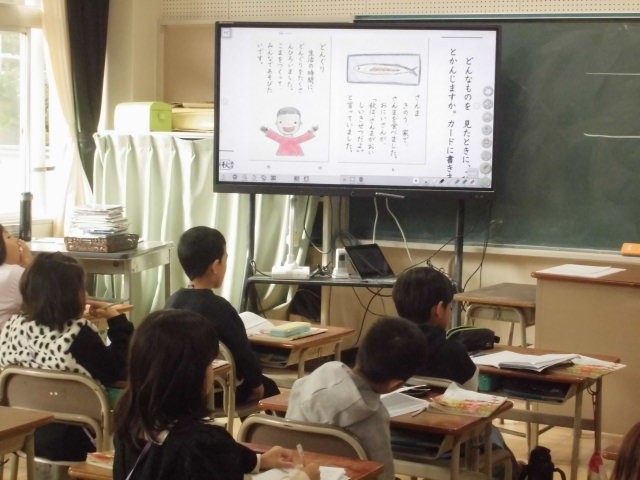 2年生は、国語の時間に、「秋だなあ」と感じるものをカードに書きました。赤とんぼ、こおろぎ、イチョウなど、たくさんの秋を見つけることができました。