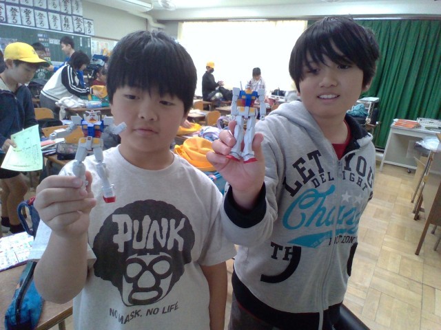 日本の工業について学んだまとめとして、株式会社バンダイから届いた「ガンプラ」を作りました。プラモデルの製造過程や作る人の思いを学んだり、実際に自分たちが作ったりして、ものづくりの楽しさを感じることができました。