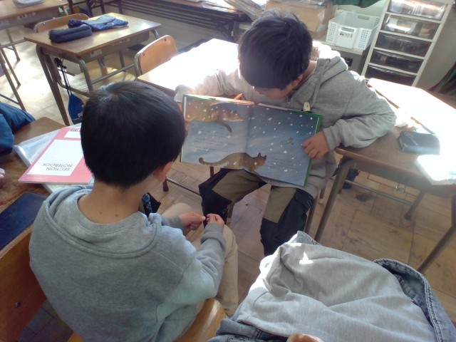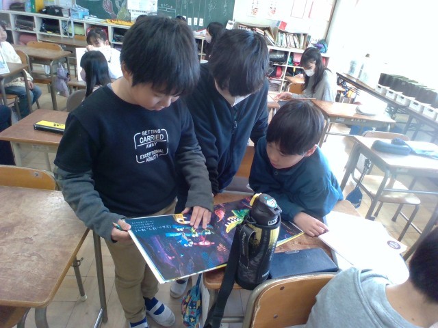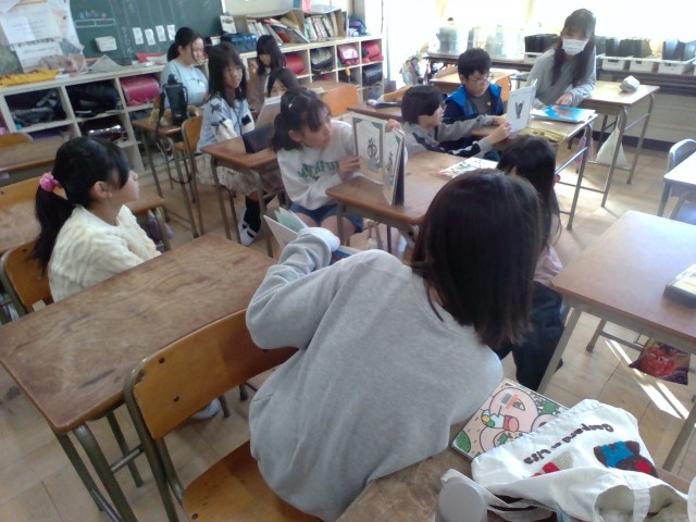 5年生は3年生の子が楽しめるような本を選び、上手に読み聞かせをしていました。