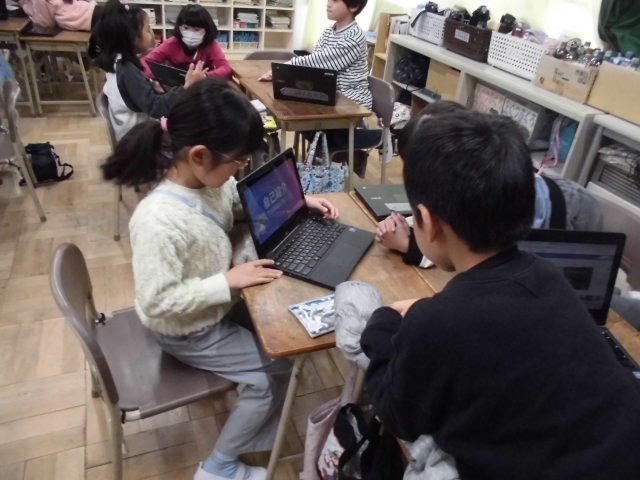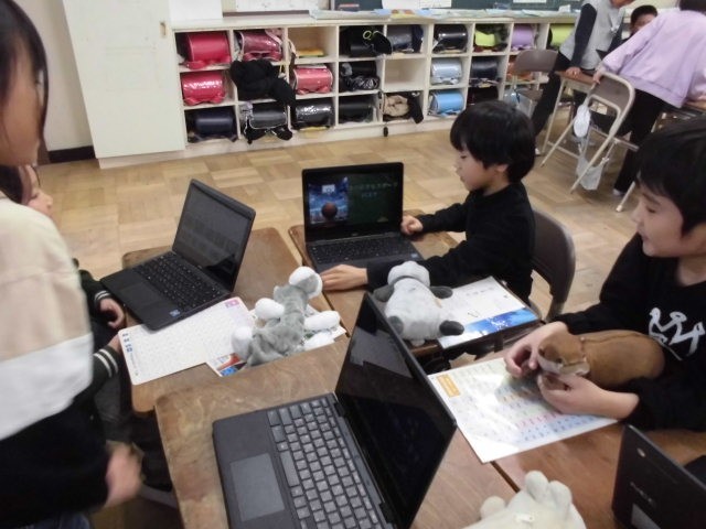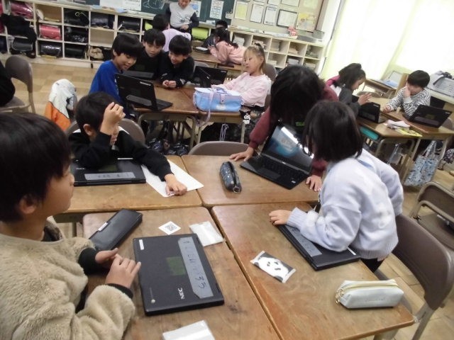 書いてることだけでなく自分の言葉をひと言加えて、グループで発表しました。