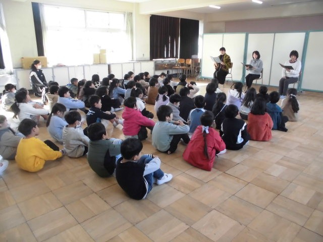 読み手の3人の息の合った語り口で、児童を読書の世界に引き込みます。
