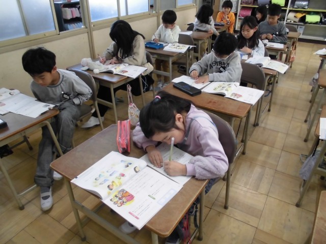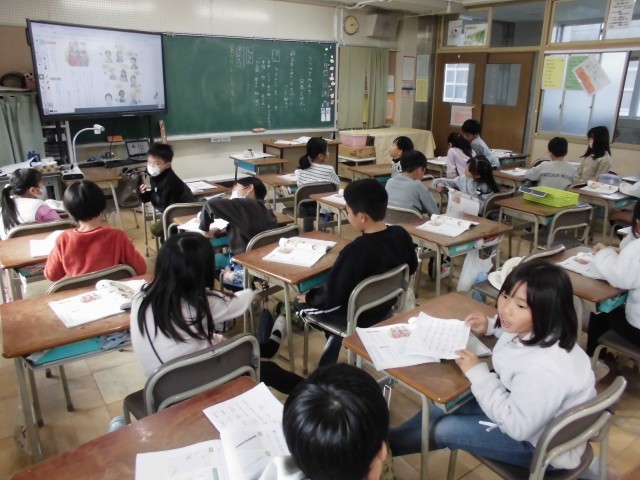 人権週間に合わせて、道徳で「くらべてみよう 日本とせかい」という授業を行いました。じゃんけんの仕方や食事のときに使う道具は、その国それぞれに違うということを知り、子どもたちは驚いていました。知ったことでいろんな国に旅行に行きたいとか、友達ができたらいいなと感じたようです。