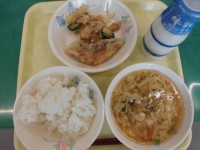 今日の献立は「ごはん・牛乳・コロッケ・赤じそ和え・沢煮わん」でした。