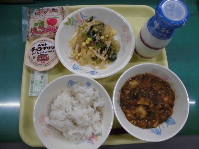 今日の献立は「麦ごはん・マーボードウフ・バンサンスー・セレクトデザート」でした。