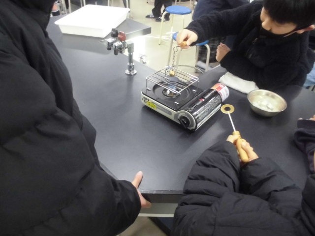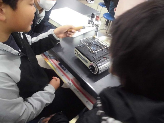 理科室に行き、金属をあたためたり、冷やしたりすると体積はどうなるのか実験をしました。