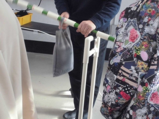 授業では、棒を使って、「てこ」の手ごたえについて実験しました。道具を使うと楽に作業ができる理由について学習していきます。