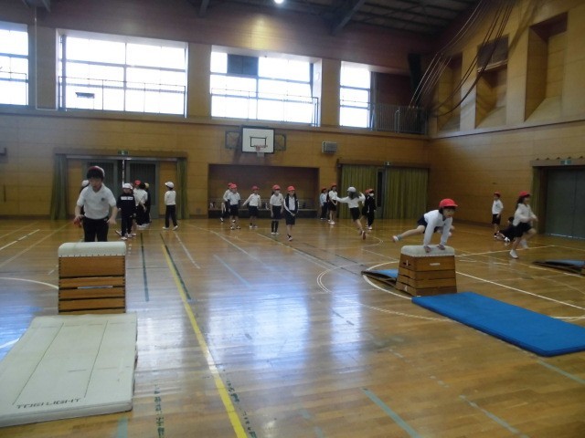 今日から、跳び箱を始めました。1年ぶりの跳び箱でしたが、安全に気を付けて準備をし、上手に跳ぶことができました。