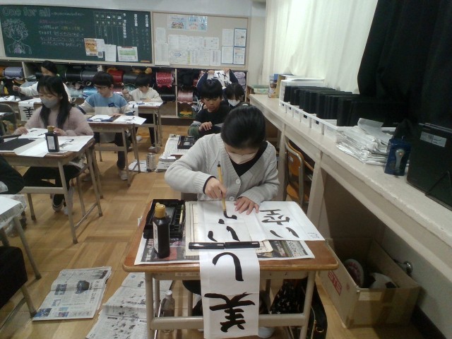 普段とはちがう半紙のため、字のバランスに気をつけながら書き上げました。