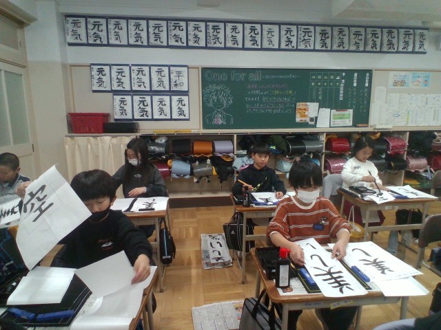 先週は、「元気」という文字を普段書いている大きさの半紙に書きました。