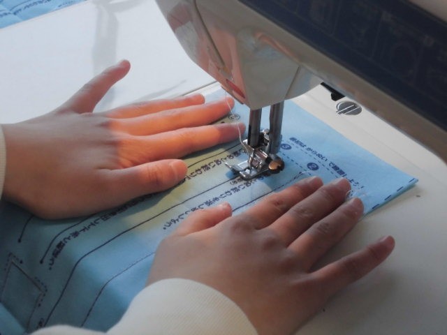 授業では、実際にミシンを使って生地を縫う練習をしました。友達と協力しながら活動できました。
