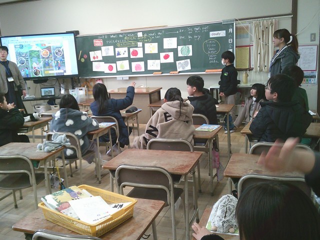 英語を使って問題を出し、ヒントを出し合って答えました。
