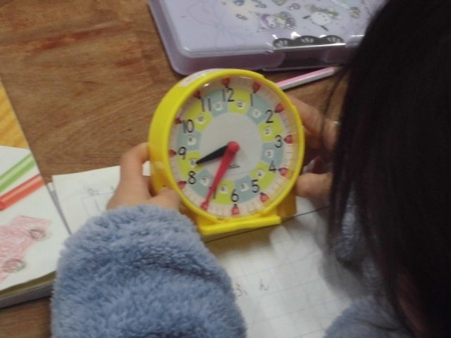 一人一人、時計の模型を使って、読み方の練習をしました。