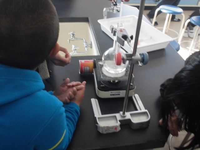 授業では、水を熱するとどうなるのか、班ごとに記録をとりながら実験しました。