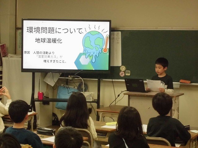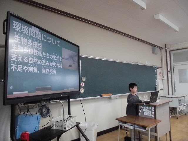 2学期から進めてきた環境教育をまとめとして1人ずつの発表をしました。