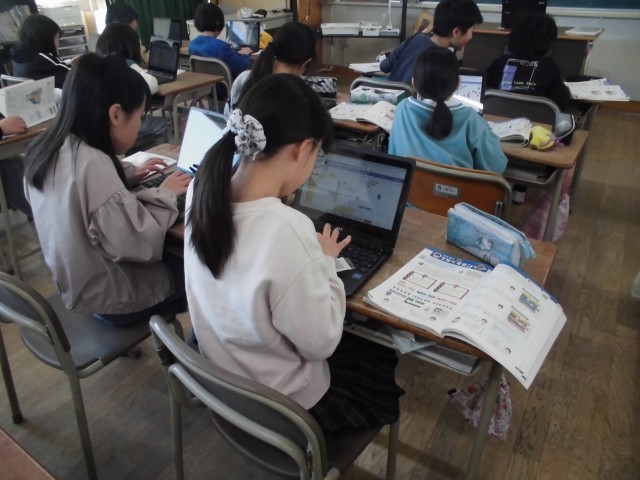 算数の授業では、プログラミングを行いました。命令をうまく使いながらプログラムすることができました。たくさんの忍者を出したり、動かしたりしながら楽しく学ぶことができました。