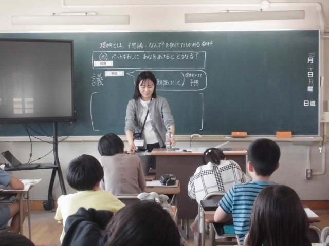 4月20日 ペットボトルに穴をあけると? 公開日 2026/04/20 更新日 2026/04/20 4年生 理科の授業の様子です。ペットボトルに穴をあけるとどうなるのか、「経験」や「学んだこと」から予想を立てました。「水風船の時は・・・」など、予想したことを交流し、考えを深めていました。これからの授業で、不思議に思ったことを確かめていきましょう。