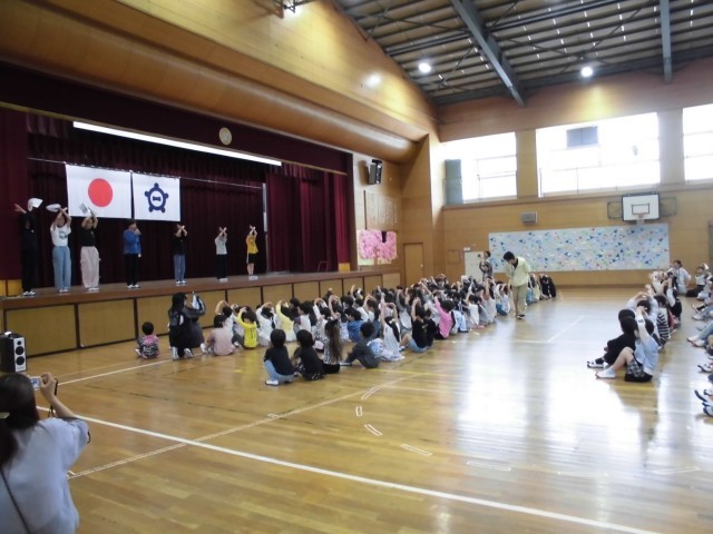 代表委員会が企画・運営して、全校で「1年生を迎える会」を行いました。クイズや全校じゃんけん大会を行いました。1年生を歓迎する歌として、2~6年生が、校歌を歌いました。