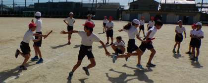 チームに分かれて、それぞれのチームで作戦を立て、練習を行って競争をしています。互いのチームを応援しながら、みんなで協力して走る姿がとてもすばらしいです。