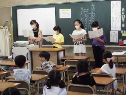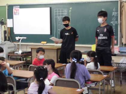 今日、やっと1年生を迎える会が行われました。今年は、密になることを避けるため、体育館で全校そろってはできませんでしたが、1年生の教室で児童会役員、代議委員が代表で行いました。クイズ・じゃんけん・インタビューをし、楽しい時間を過ごしました。1年生のみなさん、これからも仲よくしましょうね。