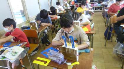 図工の時間に、「くるくるクランク」の作品を作りました。クランクの仕組みを生かして各々の作品を仕上げました。鑑賞が楽しみになってきました。