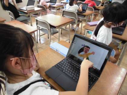 指で画面をなぞると、線が引けることに最初は大興奮していた子供たちでしたが、しだいに集中して思い思いの絵を描いていました。