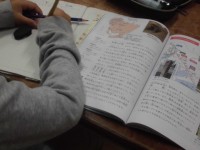 理科では、空気の体積の変化について実験をしました。試験管に石鹸水で膜をはり、熱湯や氷水に入れた時の様子を観察しました。真剣に実験に取り組み、準備や片付けも、班で協力して進めることができました。