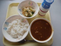 今日の給食は、根菜カレー 牛乳 アセロラヨーグルト です。