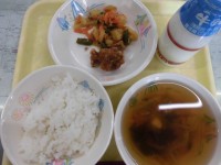 今日の献立は、「夏野菜タコンライス・牛乳・コンソメスープ・冷凍みかん」でした。