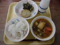 今日の献立は、「ごはん・牛乳・とうふの中華に・しゅうまい・ひじきの中華サラダ」でした。