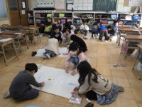 図工「パタパタストロー」では、ストローの仕組みを利用して、うごくものをつくりました。ストローの動きにあった動物などを、色画用紙で楽しくつくりました。
