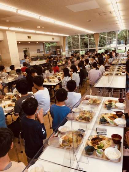 みんなで楽しい夕食の時間です。おかわりする児童もいました。