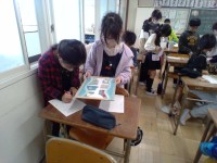絵の具を使って思いのままに、もようを描きました。描いているうちに、色や形などに着目し、「明るい」、「さみしい感じ」など、想像力を働かせながら取り組むことができました。