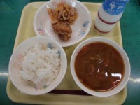 今日の献立は、「ごはん、牛乳、チキンカレー、フルーツヨーグルト」でした。 皆さ...