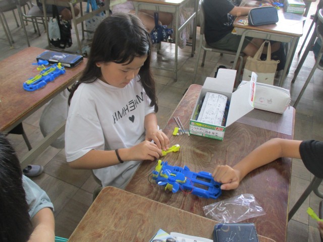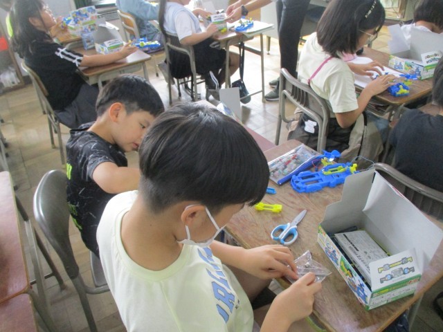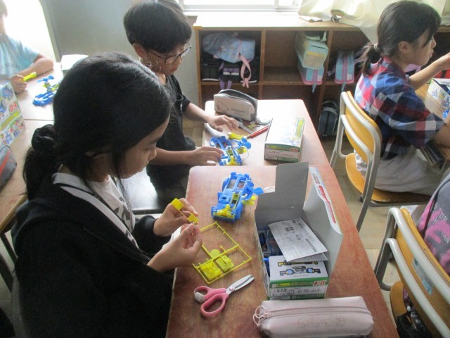 直列つなぎ・へい列つなぎについて学んでいます。みんなで助け合いながら組み立てた実験キットを使って、いざ実験!