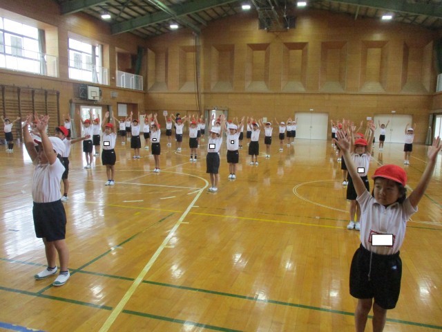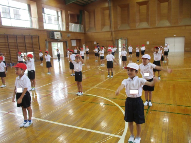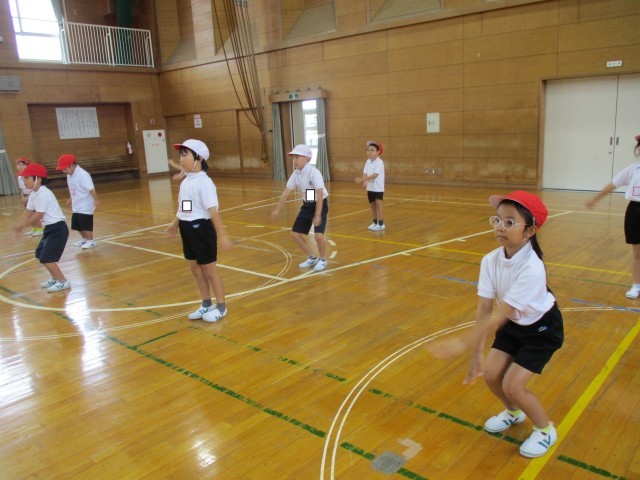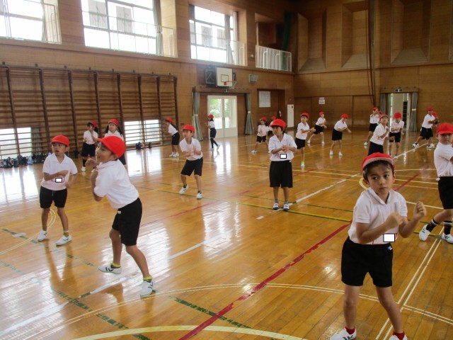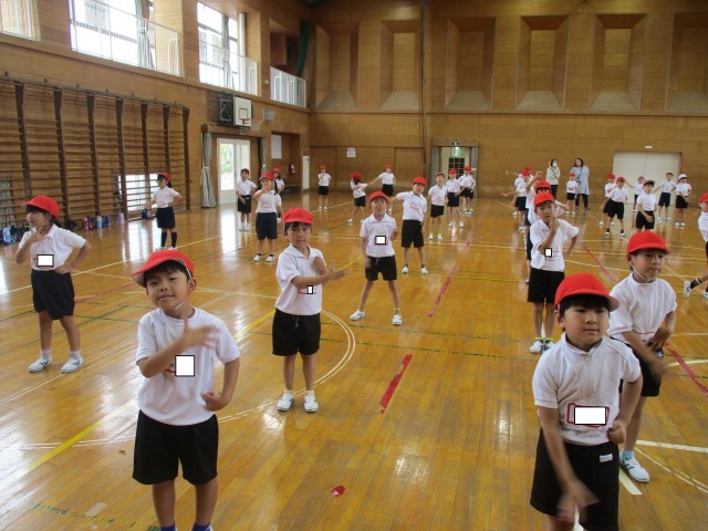 玉入れ競技の際にダンスをするので、その練習をしました。みんな楽しそうに取り組んでいました。