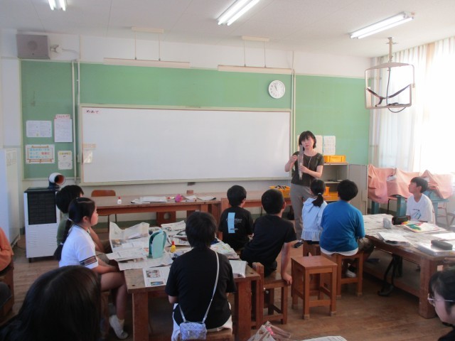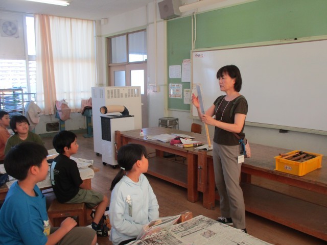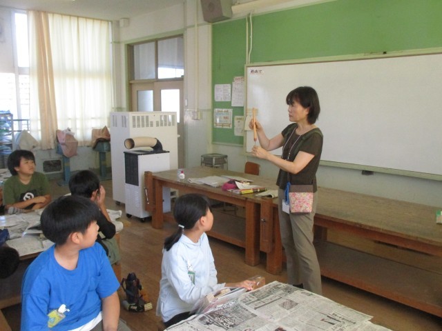 4年生になって初めての図工室です!本日より、のこぎりを使った内容に入りました。写真は、これから使う道具の説明を聞いている様子のものです。怪我のないよう注意して、作品づくりを進めていきましょう!