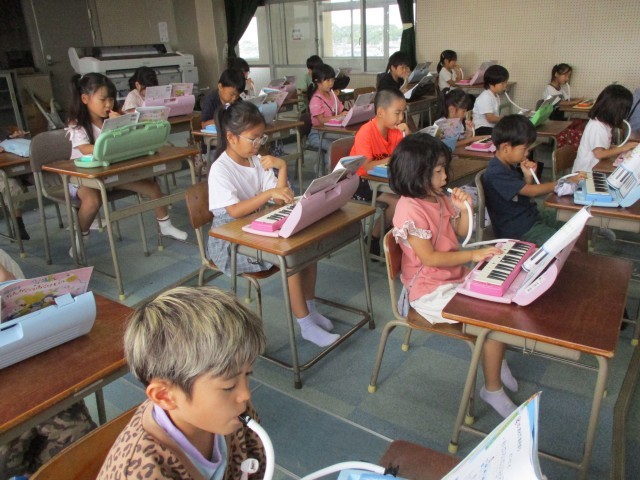 音楽の時間に、鍵盤ハーモニカの練習をしました。
