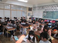 今日は1時間目に、初めて全校でのスポーツフェスティバルの練習を行いました。開会式、閉会式での動きやラジオ体操などの確認をしました。