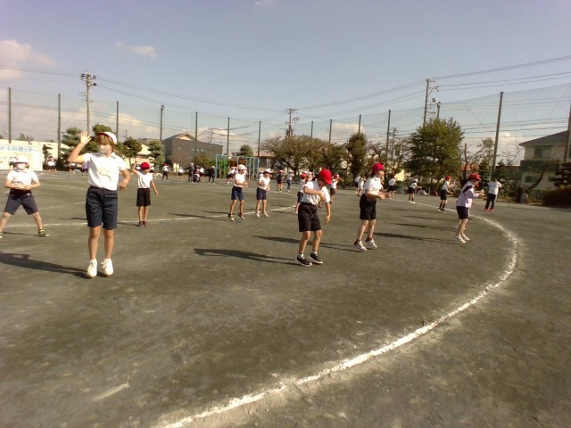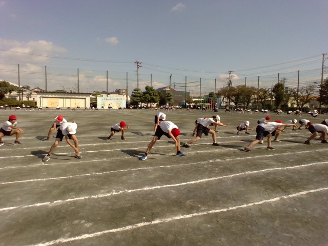今日は5・6年生合同でスポーツフェスティバルの練習をしました。